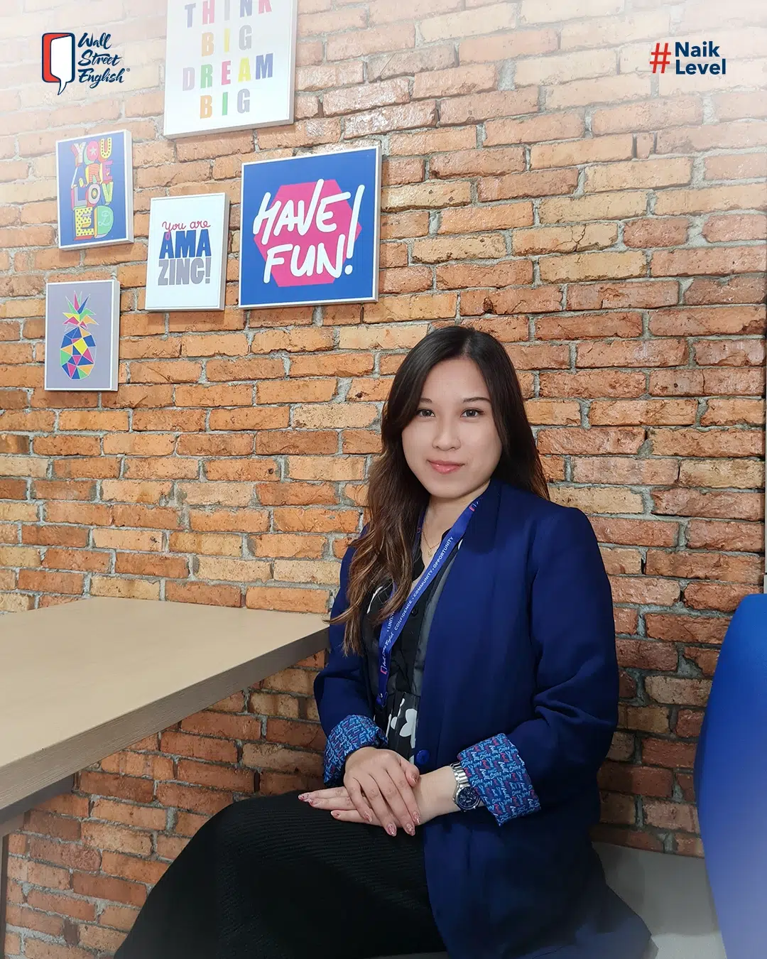 "I joined Wall Street English Indonesia because they provided me with the opportunity to improve my English language skills. Since then, I have been able to significantly enhance my proficiency and have gained invaluable knowledge. What I appreciate most is the mindset of 'Can, Will, Must' — #NaikLevel, where everyone is capable of, willing to, and must strive to #NaikLevel in life."